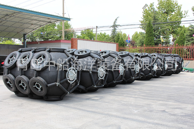 充氣橡膠護(hù)舷(靠球)是一種壓縮空氣的海洋防碰撞產(chǎn)品。主要利用壓縮空氣為緩沖介質(zhì),吸收船舶沖擊能量,使船舶??繒r(shí)具有更柔性和更軟性,以達(dá)到防碰防撞防避的效果。橫濱型靠球?qū)儆谧o(hù)套型靠球的一種,通常采用飛機(jī)輪胎或者工程輪胎來包裹球體,兩端配有肩帶,從而廣泛的用于船與船之間的轉(zhuǎn)移作業(yè)以及船舶靠泊作業(yè)等。尺寸為:D0.5m x L1.0m ~ D3.3m x L6.5m。充氣護(hù)舷(靠球)嚴(yán)格按照ISO17357-2002 和GB/T 21482-2002國際質(zhì)量標(biāo)準(zhǔn)生產(chǎn),其產(chǎn)品遠(yuǎn)銷世界各地。